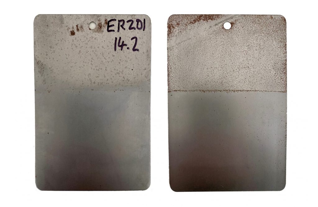 - Test coupons were used to compare the corrosion properties of CNC Speedwell’s previous solution and EnviroRinse™ 201.